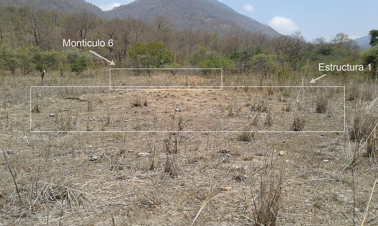 La muestra obtenida por los materiales y artefactos registrados en asociación con el nivel de ocupación de la estructura 1 « como del montículo 6 » no contiene elementos decorados o diagnósticos que permitan ubicar temporalmente la ocupación. La mitad de la muestra cerámica la componen tepalcates de ollas sencillas, y los escasos fragmentos de vajilla con engobe rojo no presentan características similares a tipos identificados en las publicaciones mencionadas en el primer apartado de este escrito. Es interesante notar que la obsidiana, la cual es escasa, no es la materia prima más abundante para la lítica tallada, ya que solamente se registraron cinco fragmentos. De éstos, cuatro corresponden a lascas y un solo fragmento corresponde a un cuchillo sobre navaja prismática. Esto sugiere que su abastecimiento no era evidente para los habitantes del valle, quienes buscaron producir herramientas talladas a partir de la materia prima local, como cantos rodados y basaltos, a partir de los cuales se han recuperado cincuenta y cinco artefactos correspondientes a lascas y raspadores.