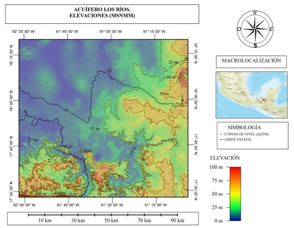 La fama de Tabasco como un territorio hídricamente abundante se debe a sus condiciones geológicas - climáticas que resultan favorables para la renovación del agua (CONABIO, 2019; Ramos-Herreraet al., 2012). En las porciones sur - sureste (en el municipio de Tenosique), y suroeste (en el municipio de Huimanguillo), es donde se presentan las principales elevaciones de terreno que conforman una zona de recarga importante debido a las altas precipitaciones que registran (INEGI, 2001).
