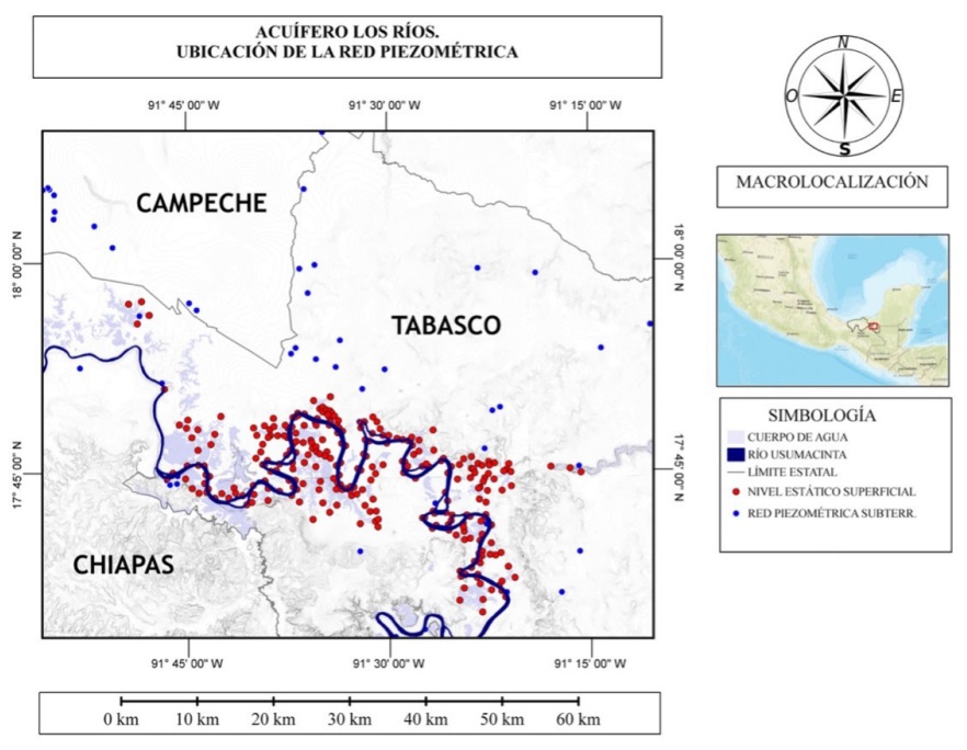 La investigación fue ejecutada gracias a las aportaciones de la Subgerencia Técnica de la Dirección Local de CONAGUA, en Villahermosa, Tabasco, la cual brindó los datos piezométricos históricos de la zona, así como antecedentes de sus estudios hidrogeológicos. Se agradecen la intervención y observaciones del Cuerpo Académico de Hidráulica e Hidrología de la Facultad de Ingeniería de la Universidad Autónoma de Yucatán y al M.I. Irving Osorio-Santos quien apoyó en el procesamiento de los datos manipulados mediante el SIG.