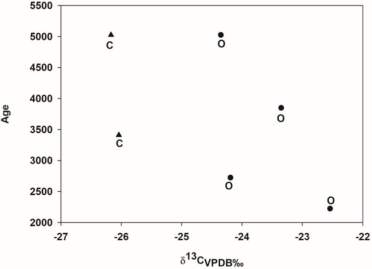 However, the variations in organic matter shown in the isotopic results do not show strong changes or variability that prove the presence of C4 plants in any of the two archaeological sites during the whole occupation.