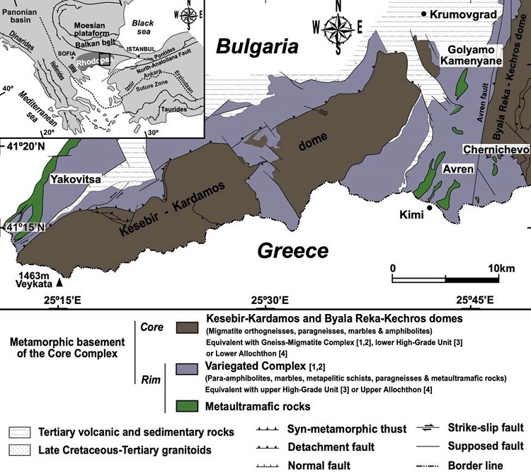 Kozhoukharov, D., Kozhoukharova, E., Papanikolaou, D., 1988, Precambrian in the Rhodope massif, in Zoubek, V. (ed.), Precambrian in Younger Fold Belts: European Variscides, the Carpathians, and Balkans. International Geological Correlation Programme, Project 22: Chichester, Wiley, 773-778.