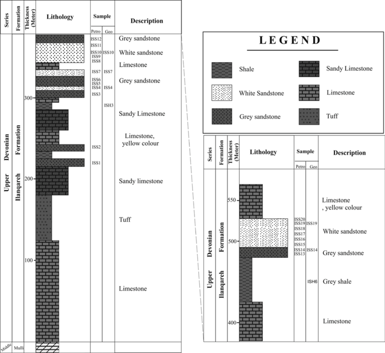 The Devonian siliciclastic-carbonate deposits of the Ilanqareh Formation in the Azarbaijan district of Iran are the western continuation of similar deposits (Jeirud Formation) in the central Alborz (Wendt et al., 2005). Comparison of the Ilanqareh Formation with the Upper Palaeozoic formations in other areas of the Middle East shows that during the deposition of these sediments, North Africa and Saudi Arabia were subjected to an intercontinental extension from Late Devonian to possibly Early Carboniferous, and the Arabian and adjacent plates were structurally affected by a regional Hercynian tectonic event (Husseini, 1991, 1992). The first study which showed the transgression of sandstone, conglomerate, and fossiliferous limestones of the Devonian Ilanqareh Formation over a Precambrian crystalline basement in the Azarbaijan region was carried out by Grewingk (1853)Rieben (1935) performed the first biostratigraphic studies on carbonate parts of the Ilanqareh Formation. The lower contact of Ilanqareh Formation is not over Precambrian crystalline basement in all parts of Azarbaijan area, and in some places, including the north of Tabriz, the transgression of Ilanqareh deposits is on Lower Palaeozoic sandstones of Lalun and Mila formations. Moreover, the deposits of this formation are overlain by the dolomites of the Ruteh Formation (Alavi-Naini and Bolourchi, 1973).