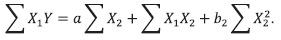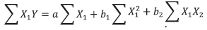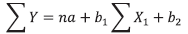 Para poder realizar una regresión múltiple se debe de llegar a una ecuación de la recta ajustada a los datos históricos que se presenten en el problema de tal forma que la ecuación de la recta queda determinada por: = a + b1 X1 + b2 X2,, esto es para el caso de dos variables dependientes y para poder conocer los parámetros a, b1 y b2 se necesita resolver el siguiente sistema de ecuaciones [1]: