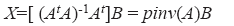 {X} = [pinv(A)] {B} solución por mínimos cuadrados.