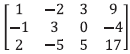 Ahora, aplique soluciones elementales en los renglones hasta obtener ceros arriba y debajo de cada uno de los 1 principales, como se muestra a continuación.