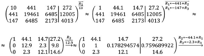 Keywords: algebra linear, minimum squares, Gauss-Jordan, multiple regression, system of equations.