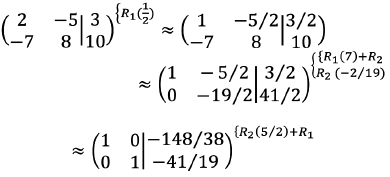 Como siguiente punto se resolverán los mismos sistemas pero ahora con el método de Gauss-Jordan, quedando la solución de la siguiente manera, para el caso del sistema de dos por dos.