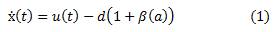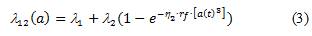 En el presente modelo se asumen dos efectos del proceso de deterioro en el sistema. El primero consiste en la asunción de que la fiabilidad del sistema decrece debido al efecto de la degradación. Por ende, esto conlleva a definir que la tasa de fallas sea una función creciente de la edad, tal como se define en la siguiente expresión: