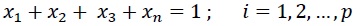 diseños simplex reticulares; en un diseño simplex de centroide con p componentes,