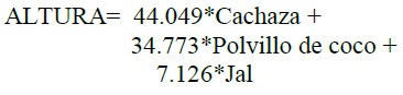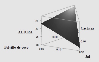 Después de trascurridos 90 días a partir del trasplante que es cuando las plantas alcanzan una edad adecuada para su venta, se midieron cuidadosamente las cuatro características físicas o variables de respuesta (diámetro, altura, flores y color); se realizó un análisis completo para cada variable de cada sustrato. A manera de ejemplo, se describe el análisis realizado para la mezcla cachaza-polvillo de coco-jal, para la variable de respuesta altura de la planta.
