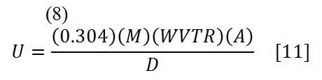 U = Cantidad de desecante a utilizar para el control de la humedad en UNIDADES; una UNIDAD de desecante se define como la cantidad de desecante que absorberá un mínimo de 2,85 g de vapor de agua al 20% de HR y 25°C.
