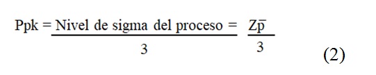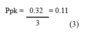 El Ppk utiliza la desviación estándar actual para el cálculo de la variación del proceso con base tanto en la ubicación como en la dispersión del proceso. Por lo general los valores de Ppk más altos indican un proceso más capaz y los valores de Ppk más bajos indican que el proceso puede necesitar mejoras, así que en base a este razonamiento, a mayor Ppk a 1 indica que el proceso pueda cumplir con las especificaciones, siendo 1.33 un buen valor de referencia de Ppk generalmente usado en la industria, fórmula (3).