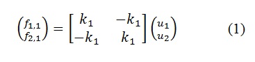 En los principios del FEM, el sistema mecánico más simple puede ser representado matemáticamente mediante una matriz que represente un vector que relaciona las fuerzas externas, una matriz que indique los parámetros del comportamiento mecánico de los materiales que se están estudiando, y un vector donde se expresen los desplazamientos generados en la estructura del elemento. La ecuación 1 representa esta expresión en forma matricial.