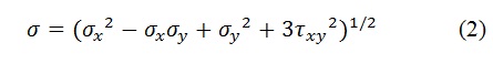 El criterio de Von Mises es una teoría de falla utilizada comúnmente en el diseño de elementos mecánicos. La teoría se basa en el hecho que la fluencia de un material dúctil no es un fenómeno intrínseco a la tensión o a la compresión de un material, sino más bien, que está relacionada con la distorsión angular. La teoría de Von Mises predice una falla por fluencia, la cual ocurre una vez que la energía de deformación total por unidad de volumen que se presenta en un material es mayor que la energía de deformación por unidad de volumen correspondiente al mismo material, los parámetros de capacidad de energía de los materiales son pronosticados en base a un ensayo de tensión o de compresión uniaxial. La ecuación 2 permite calcular el esfuerzo de Von Mises y la ecuación 3 es el criterio de falla de Von Mises.