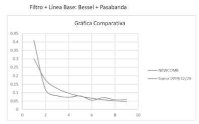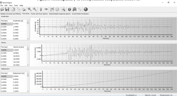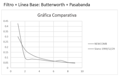 Tal es el caso del registro 16 de la estación SCT1, como se observa en la figura 6. Se presentan solamente las gráficas de forma ilustrativa, ya que para las distintas opciones de corrección de línea base con cada filtro, las gráficas son muy similares.