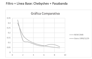 La Tabla 3 presenta las combinaciones aplicadas a los registros de la estación SCT1, donde los símbolos indican aquellos filtros con los que la señal cumple con la ley NB.