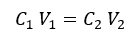 (1)Concentración de etanol en cerveza (C1) y líquido evaporado (C2). Volumen de muestra de cerveza (V1), de líquido evaporado (V2).
