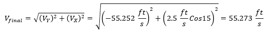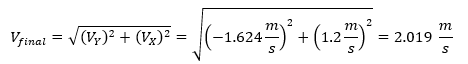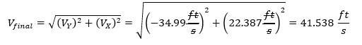 (8)Al sustituir la (VY)y la (V0X) en la Ecuación (9), se obtiene la magnitud de la velocidad final:
