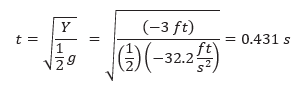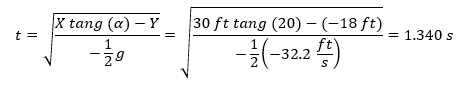 Para determinar la velocidad inicial, primero se calcula el tiempo con la Ecuación (5) y después, el resultado, se sustituye en la Ecuación (6):