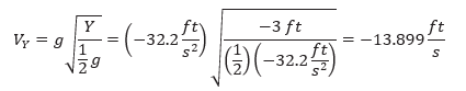 (12)Para determinar la velocidad final (VY), se sustituyen la aceleración gravitacional (g) y la distancia vertical final en (Y) en la Ecuación (13):