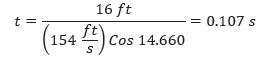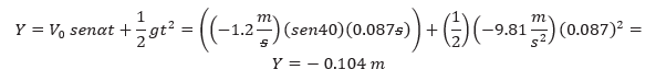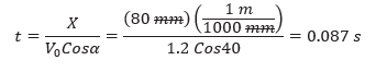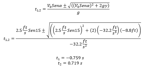 (26)De los cuales el que se utilizara para los cálculos es α2 porque es la que cumple con la condición de ejercicio que sea menor a 45°. Al sustituirlo en la Ecuación (27), se determina el tiempo,
