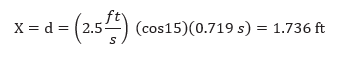 Ejercicio 11.104 de [10]: Por el cañón de un desagüe fluye agua con una velocidad inicial de 2.5 ft/s a un ángulo de 15° con la horizontal. Determine el rango de valores de la distancia d para los cuales el agua caerá dentro del recipiente BC. Solución 1.737 ft / s. Ver Figura 9.