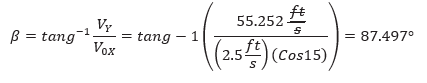 (14)Finalmente, para encontrar el ángulo se sustituyen las componentes de la velocidad al final, en la Ecuación (15),
