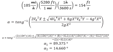 Para determinar el ángulo y el tiempo, primero se convierte la velocidad de