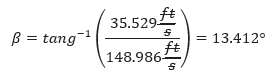 (19)Finalmente, para encontrar el ángulo se sustituyen las compones de la velocidad al final, en la Ecuación (20),