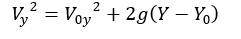 (27)Para determinar la velocidad final (VY), se sustituyen la aceleración gravitacional (g) y la distancia vertical final en (Y) en la Ecuación (28):