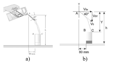 a un ángulo de 40° con la horizontal, determine el rango de valores de la altura h para los cuales la leche entrará en el vaso, como se observa en la figura 10. Solución 0.244 m .