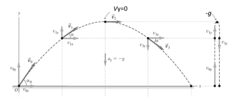 Cuando se combinan ambos movimientos surgen el movimiento de proyectiles de los cuales, el primero es cualquier cuerpo que recibe una velocidad inicial y posteriormente le sigue una trayectoria determinada totalmente por los efectos de la aceleración gravitacional y la resistencia del aire, ver Figura 1 [11].