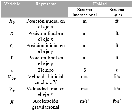 (1)Para el movimiento rectilíneo uniformemente acelerado se utilizan las ecuaciones (4,5 y 6) [10] desplazamiento en el eje Y: