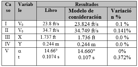 Para evaluar la practicidad y efectividad de las ecuaciones presentadas en la sección 3, se resolvieron cinco ejercicios sobre tiro parabólico propuestos en los libros [7,8,9,10,11], con la característica particular que tuvieran expresado el resultado.
