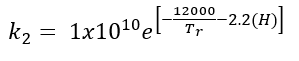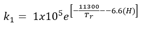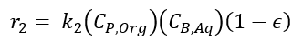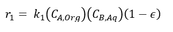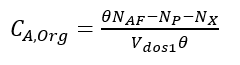 (23)Donde t es el tiempo de reacción (s) con un valor inicial de 0 s; Np es el número de moles de la 2-octanona (kmol); Nx es el número de moles de ácidos carboxílicos (kmol); Vr0 es el volumen inicial en el reactor (1.5 m3); E es la fracción volumétrica de la fase dispersa; Vdos1 es el volumen final de los reactivos que se alimentan (0.6 m3); r1 y r2 son las velocidades de reacción (kmol/m3 s); k1 y k2 son las constantes cinéticas (m3/kmol s); CA,Org, CP,Org y CB,Aq son las concentraciones de A, P y B en la fase orgánica y acuosa, respectivamente (kmol/m3); Tr es la temperatura en el reactor (K) y su valor inicial es de 260 K; H es la función de acidez de Hammett’s; wt es la concentración en peso del ácido nítrico; NN es el número de moles de HNO3 (kmol); NN0 es el número inicial de moles de HNO3 (kmol); Conc% es la concentración másica inicial de la solución de HNO3 (60%); NAF es el total de moles alimentados de 2-octanol (3.78 kmol);