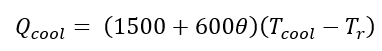 es un tiempo adimensional; tdos es el tiempo que dura la adición de reactivos (36000 s); Qr es la suma del calor de las dos reacciones (W); Qdos es la entrada de calor por la adición de reactivos (W); Qcool es el calor removido por la chaqueta de enfriamiento (W); Tdos es la temperatura a la que se adicionan los reactivos (293.15 K);