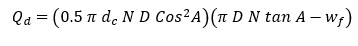 [ Ecuación 4 ]donde N es la velocidad de rotación del tornillo. Al sustituir las ecuaciones 3 y 4 en la ecuación 1 se obtiene la ecuación 5.