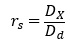 [Ecuación 6]donde 𝑟𝑠 es la razón de dilatación; 𝐷𝑥 es el diámetro de la sección transversal extruida; y 𝐷𝑑 es el diámetro del orificio del dado. La dilatación en el dado se reduce aumentando el tiempo en el canal, y esto se logra por medio de un canal más largo [12].