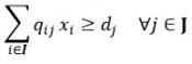 (2)Las restricciones a considerar es satisfacer la demanda requerida para cada parte (3) y la no negatividad de las variables de decisión (4).