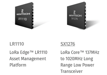 Los nodos en IoT son elementos esenciales desde los cuales se recolectan los datos sobre las cosas. Se elige para este escenario, un nodo de prueba que contiene un chip inalámbrico integrado para red de gran alcance y de baja potencia, mismo que admite el protocolo LoRaWAN e incluye un transceptor inalámbrico de amplio espectro de ultra largo alcance SX1276 fabricado por Semtech. El nodo permite obtener la información sobre la estabilidad y alcance de la señal, así como el envío y almacenamiento de los datos. En la Figura 9 se aprecian un par de modelos de chip Semtech para aplicación en equipamiento LoRa Core y Lora Edge.