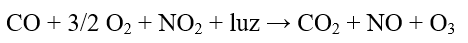 Incluso, el aumento estimado de 0.040ppm por Correa-García et al., 2012[10] para Pedregal en aquel tiempo, se aproximó bien con el valor registrado de 0.036ppm de O3 en el 2005 (Tabla, 2), mientras que el aporte de CO en la formación de O3 fue explicado por Caselli, 1992[7] con la siguiente reacción química.