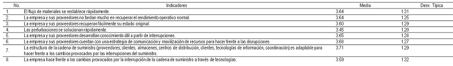 Los resultados indican que intensificación en la atención y aplicación de recursos organizacionales a las estrategias de agilidad, gestión de la vulnerabilidad y la transferencia de pedidos a nuevos proveedores, redituaría en la prevención y enfrentamiento eficaz de las interrupciones, ya que fueron las tres estrategias que revelaron capacidad para explicar la resiliencia de la cadena de suministro de las empresas. También sugieren que: la identificación, categorización y valoración del impacto adverso y de las probabilidades de ocurrencia de los eventos disruptivos a las que las cadenas de suministro se encuentran más expuestas; el continuo monitoreo del contexto; la compartición de información y la implementación conjunta de planes de contingencia con los socios de la cadena de suministro para prevenir o mitigar sus efectos adverso; y el aprendizaje de las situaciones enfrentadas, son recursos capaces de mitigar los impactos negativos de las fuentes de interrupciones.
