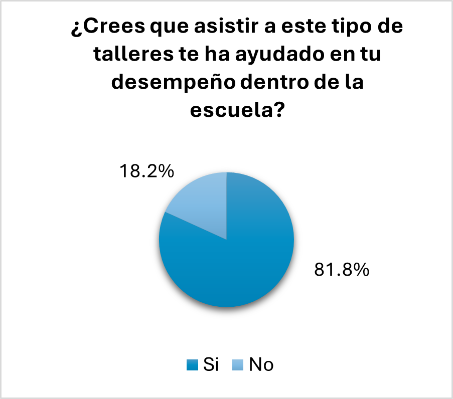 Para concluir, el último ítem fue sobre su desempeño en la escuela en relación de asistir a un taller de robótica y dependiendo de la respuesta que ellos seleccionarán, así sea positiva o negativa, que explicarán su razón. Y como se puede observar en la siguiente gráfica de la Figura 10, a la gran mayoría de ellos le fue de mucha utilidad el hecho de pertenecer a un club de robótica, no obstante, como se demuestra en la gráfica, reflejan lo contrario.