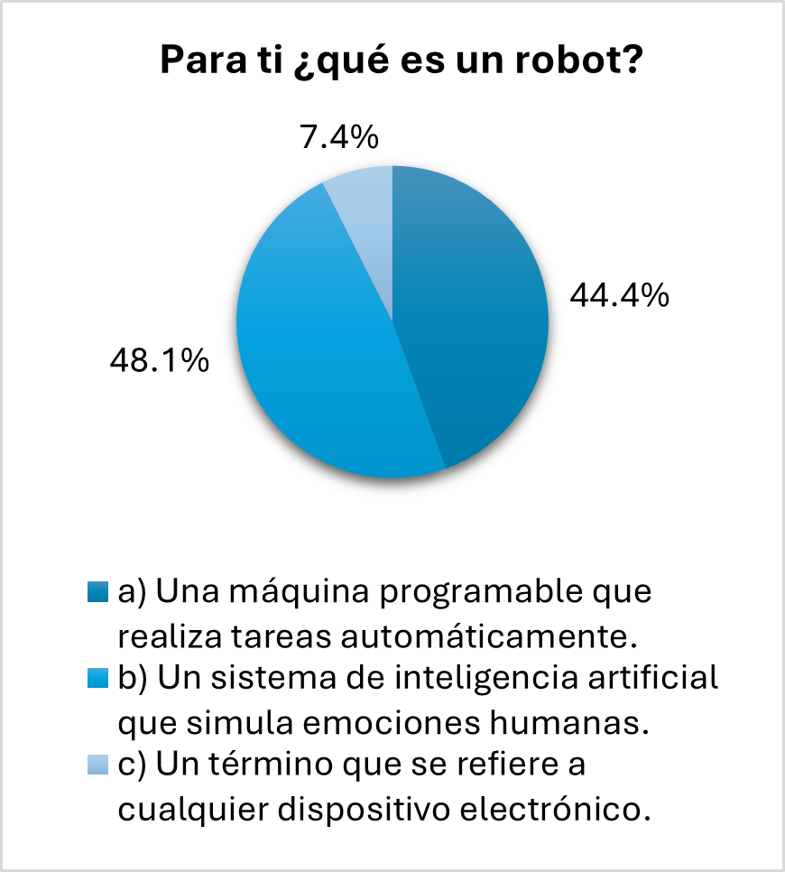Como se puede visualizar en la siguiente gráfica de la Figura 3, la gran mayoría de los alumnos muestran un resultado negativo, respecto al concepto de la robótica, pero algunos de ellos tienen idea de lo que es, ya que han asistido a un club de robótica.