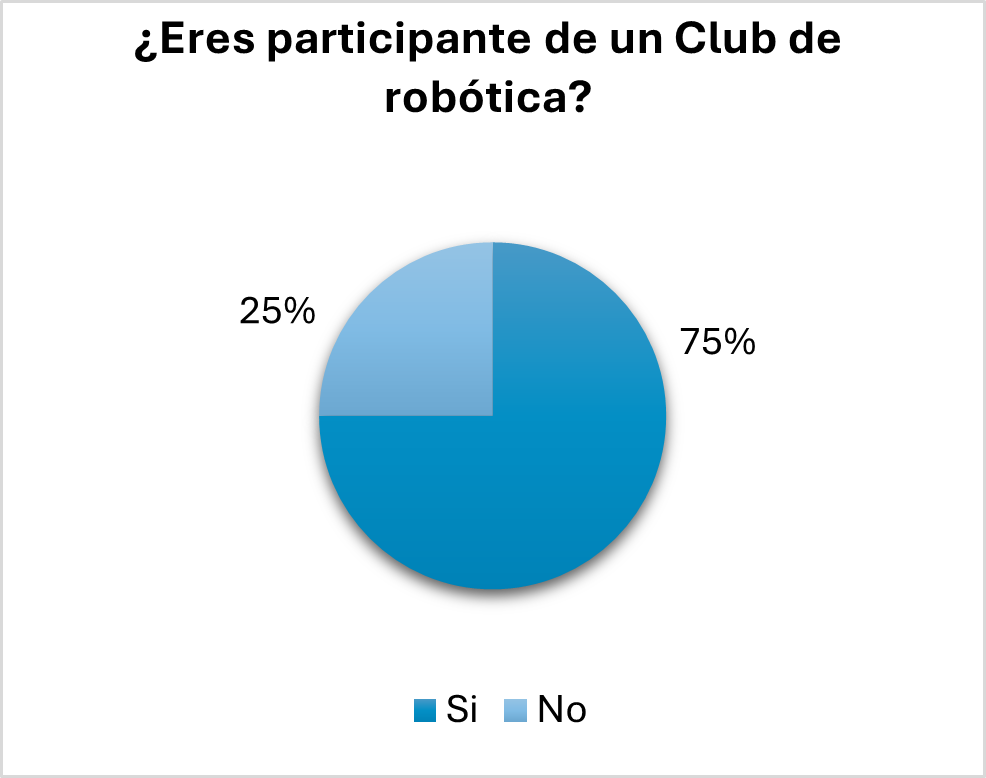 Como se puede apreciar en la gráfica de la Figura 7, de un total de 27 adolescentes, solo el 25% de los encuestados pertenecen al club de robótica.