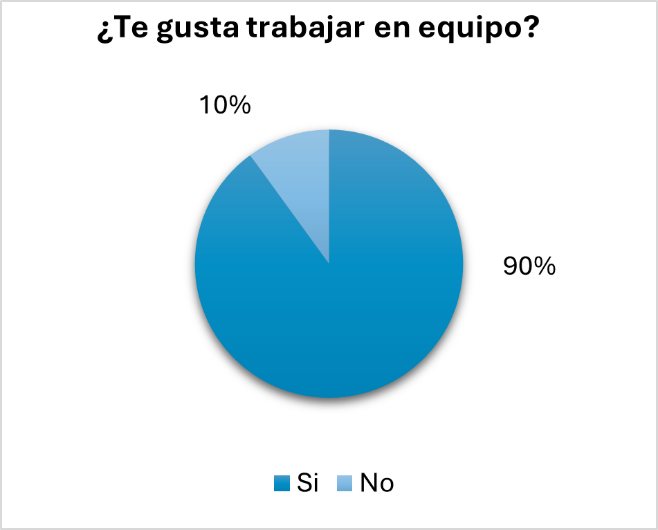 Dentro del instrumento de recolección de datos 3 de las 12 preguntas son dirigidas para los 10 alumnos que pertenecen al club, del cual como se observa en la gráfica de la Figura 8, a la gran mayoría le gusta el trabajo colaborativo sin embargo algunos de ellos, no han desarrollado la habilidad.