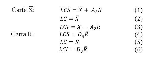 Si los datos reflejan que el proceso está en control estadístico tanto en lo referente a variabilidad como a la tendencia central, entonces estos límites se continuarán usando para analizar el proceso en tiempo real, de tal forma que en cuanto se tomen los datos se sabrá si el proceso sigue operando bajo un estado de control estadístico o no [14]; en consecuencia, los LC mostrados en la tabla 1, fueron tomados para implantar la carta X̅-R.