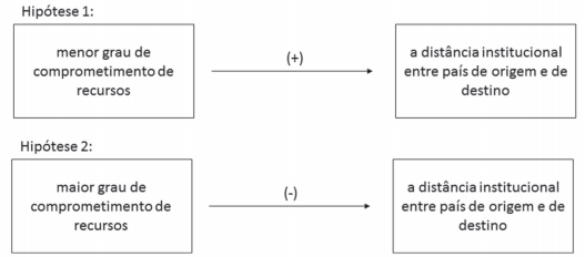 H2: Um maior grau de comprometimento de recursos na internacionalização do family business group está associado negativamente com a distância institucional entre país de origem e de destino.