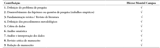 Contribuição de cada autor: