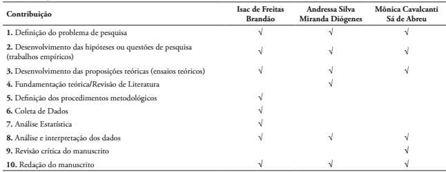 Contribuição dos autores: